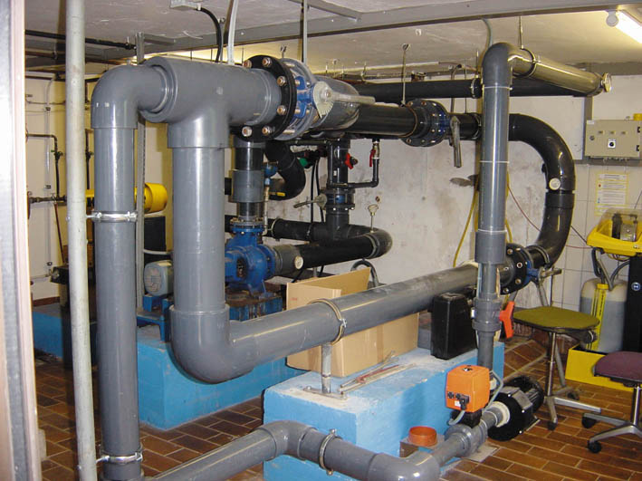 Dabei wird das Badewasser aus der Reinwasserleitung der Filteranlage entnommen und mittels einer Solarumwälzpumpe durch den Absorber gepumpt.